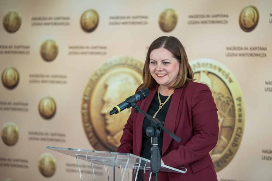 W tym roku nagradzamy wybitną Panią Kapitan. Przy każdym z bardzo wielu organizowanych wydarzeń wykazywała się niezwykłą pracowitością, wiedzą i kompetencjami, niezbędnymi do poruszania się w bardzo skomplikowanym świecie współczesnego, profesjonalnego jachtingu regatowego. Zawsze i wszyscy byli pod wrażeniem jej umiejętności działania w zespole i szybkości w podejmowaniu decyzji. W 2022 roku w zdominowanym przez Brytyjczyków środowisku wielkich żaglowców, najpierw jako pierwsza kobieta została przewodniczącą regat, a potem – również jako pierwsza kobieta – objęła najważniejszą funkcję i została dyrektorką The Tall Ships Races. Jest synonimem wielkich kompetencji i wzorem dla wszystkich, którzy działają na rzecz organizacji życia środowiska żeglarskiego, regat, imprez sportowych i projektów żeglarskich. Od lat wyznacza standardy i poziom tych działań – mówił o laureatce Waldemar Heflich, dziennikarz i publicysta, reprezentujący w kapitule Press Club Polska.